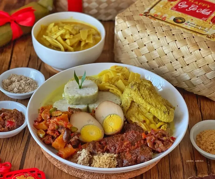 Opor ayam adalah salah satu lauk utama yang hampir selalu ada dalam Lontong Cap Go Meh.